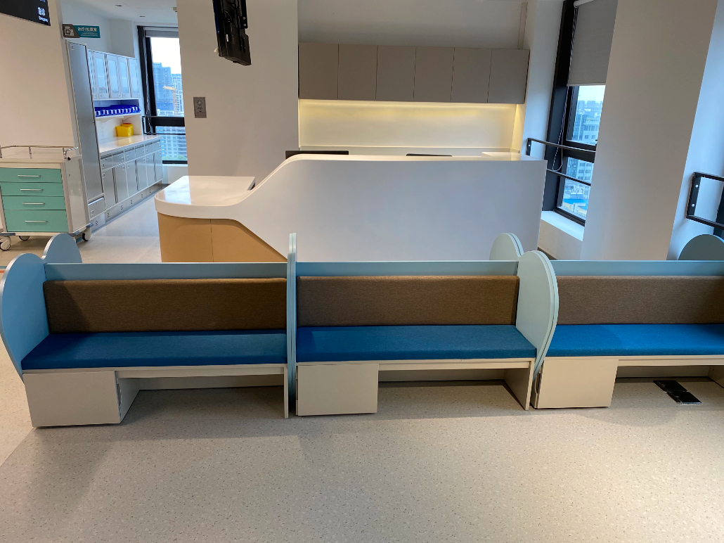 此外,保證新意的同時(shí),就診兒童的安全也不可忽視,像桌角、椅子等地方,賽康全都采用了圓角處理。
